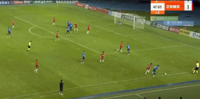 第45+2分钟,大连鲲城右路突破送出传中,维尼修斯头球破门,大连鲲城2-1定南赣联。↓